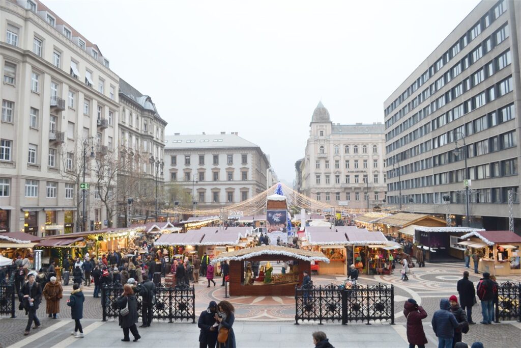 A short walk away, Vörösmarty Square hosts another major Christmas fair, buzzing with families, street performers, music, and the famous mini Christmas train for kids. The square glows every evening under thousands of lights, offering a mix of tradition and modern festive flair.