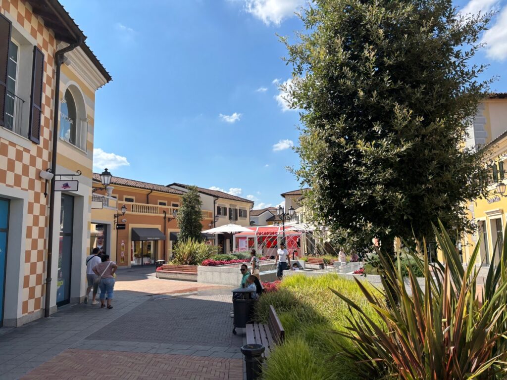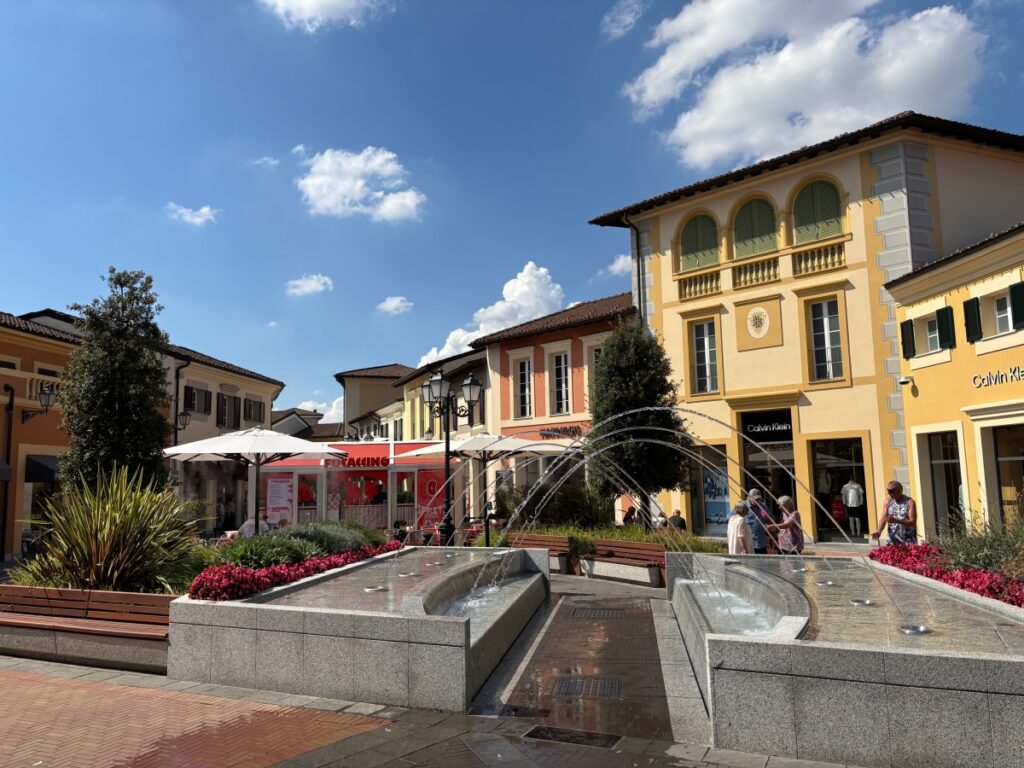 The outlet is not just a strip of shops, but rather designed like a picturesque Italian village, complete with pastel-colored facades, arcades, and charming squares with fountains. This gives the whole experience a touristic dimension. Cafés and restaurants are scattered across the complex, making it easy to take breaks with coffee, gelato, or pizza on a terrace.